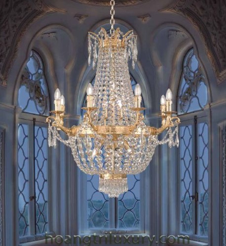 - Trần cao: nên chọn đèn chùm nhiều tầng, nhiều nhánh để tạo ấn tượng, chiều sâu.
